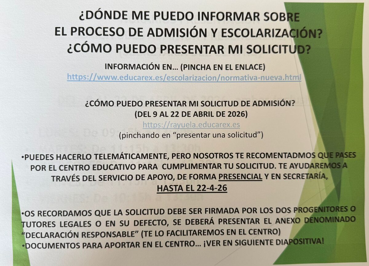 Para cualquier aclaración o duda, diríjanse al centro educativo. Esta información será remitida por Rayuela y publicada en la web del centro.